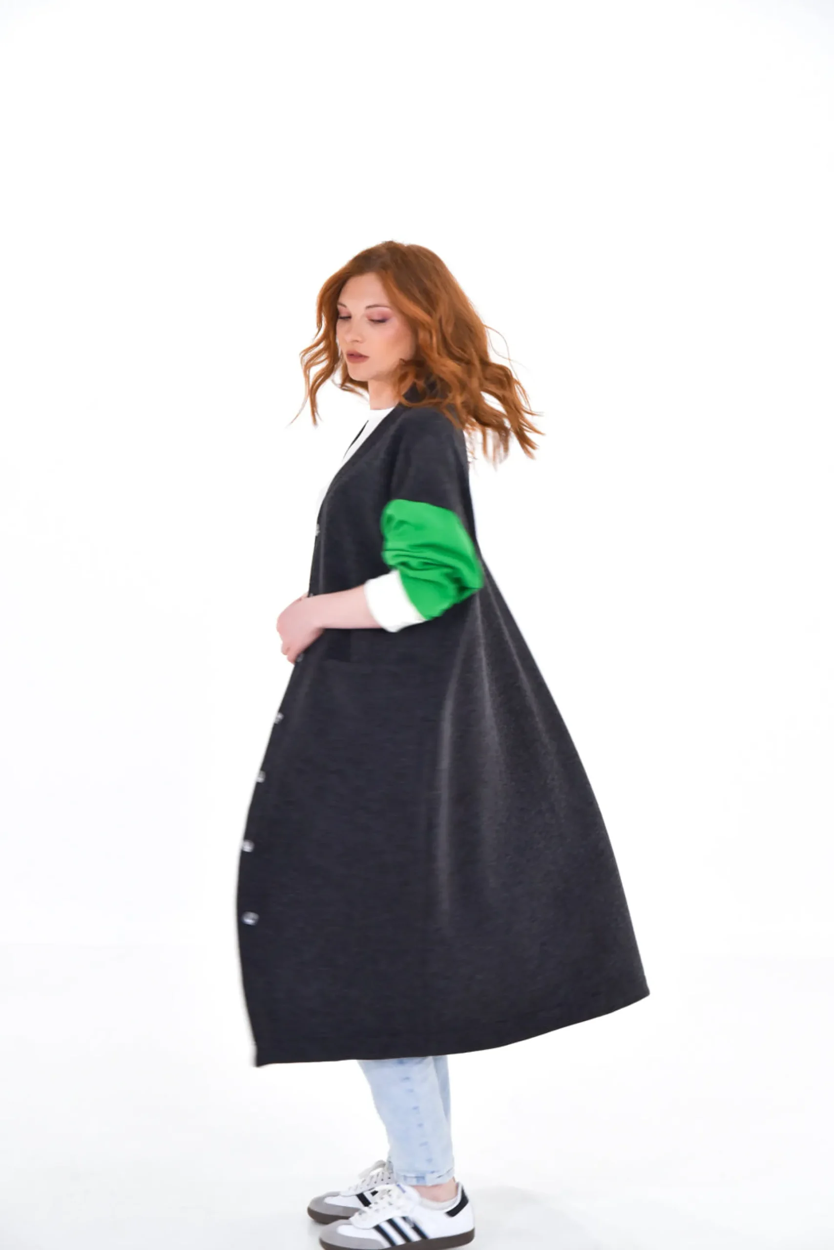 ¡Dale vida a tu look con nuestro abrigo funky! Cuerpo gris, mangas vibrantes y estilo moderno. ¡Cómodo, práctico y lleno de actitud!