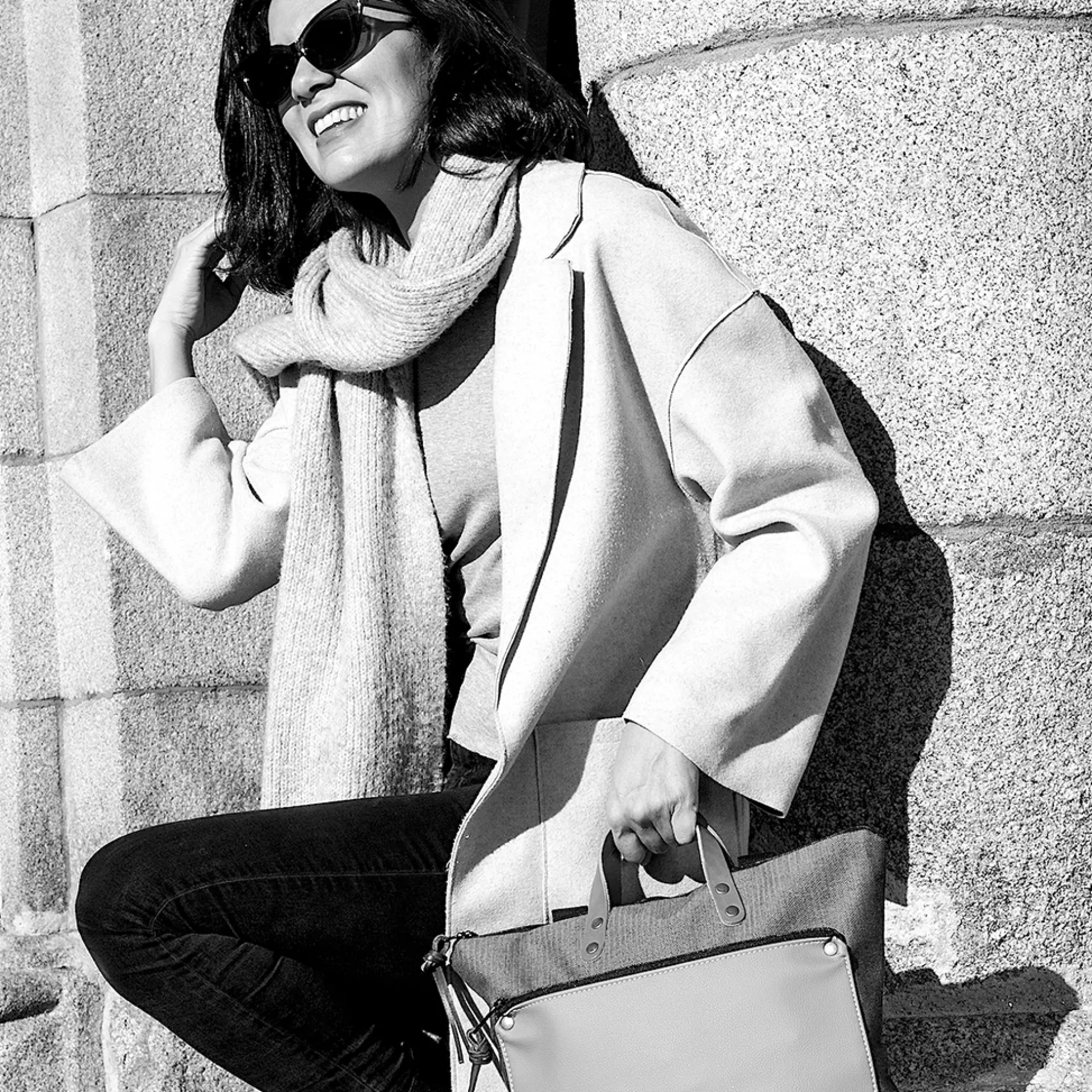 Mochila unisex en formato cuadrado para poder llevar un portátil de 13’’ o una tablet en modo horizontal. Con un bolsillo exterior, de piel vegana anti rozaduras y cremallera, con soporte para libros o revistas.